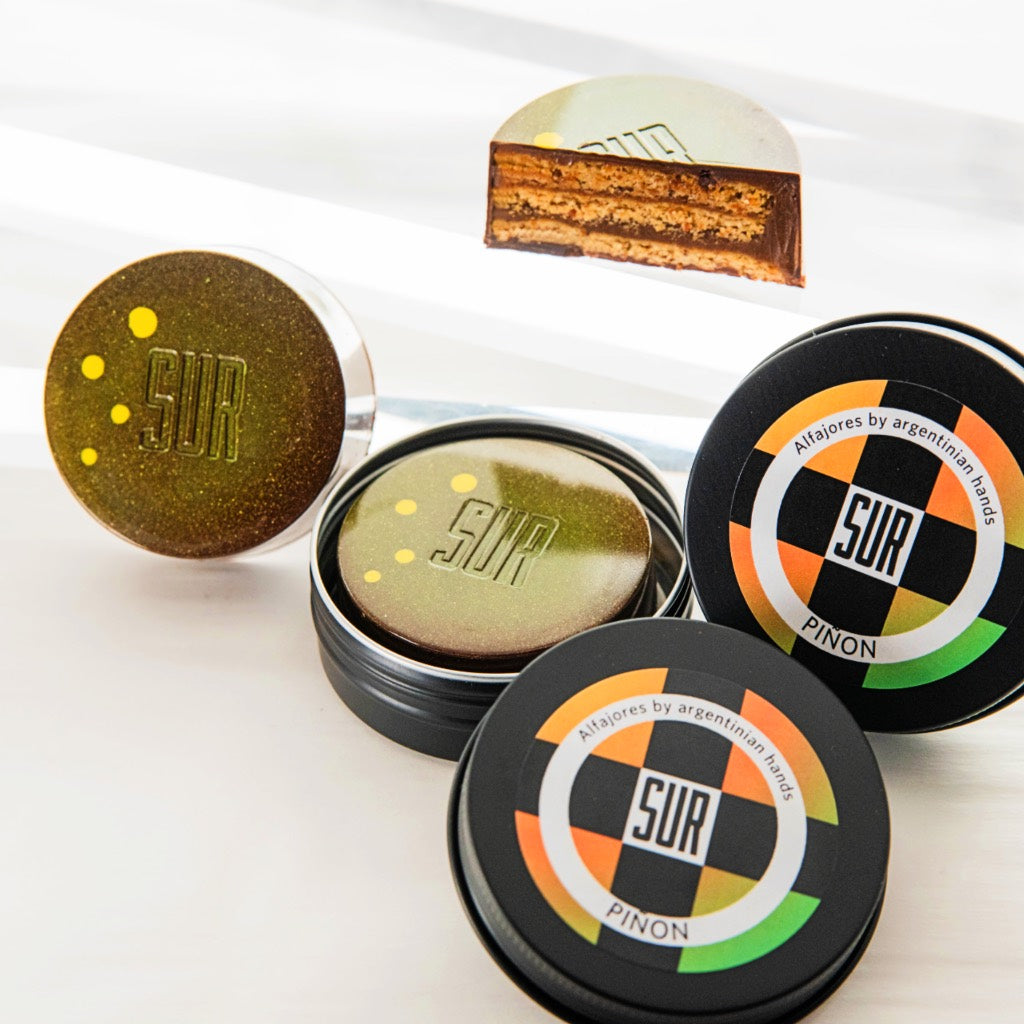 This alfajor is special & unique, made with Monkey Puzzle seed's flour brought from Patagonia Argentina. The pine cone is collected once it falls from the tree and refined into flour. The flavour of the biscake is nutty with certain crunchiness, balancing the rich indulgence from the Dulce de Leche filling.