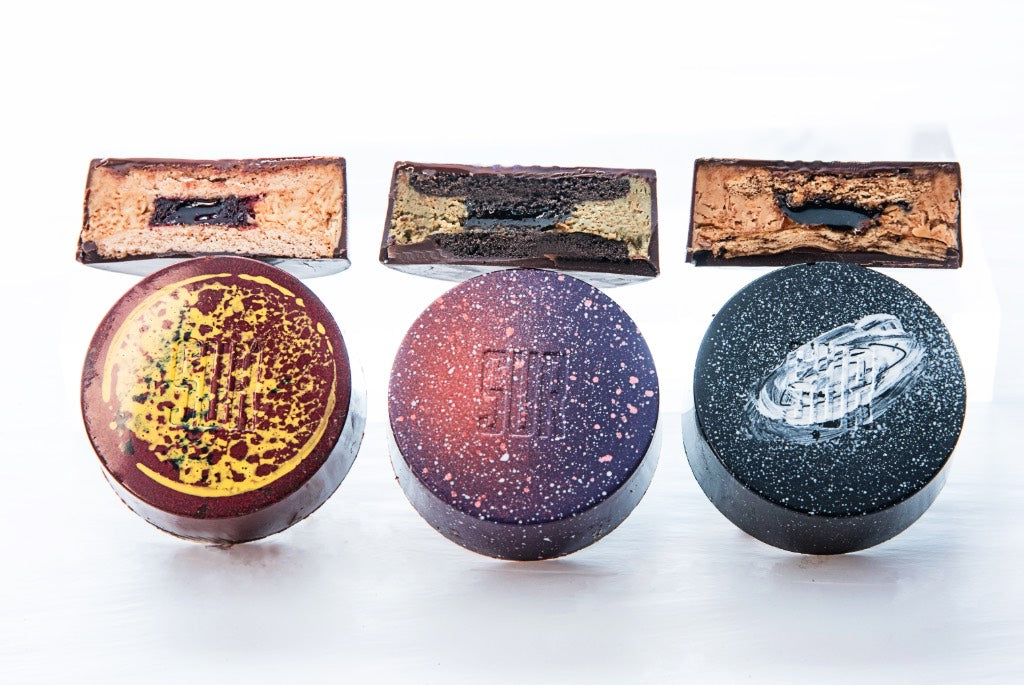 - Milkyway Journey through a cloud of velvety pistachio praline to discover a bright, tangy centre of passion fruit. The entire alfajor is coated in an expressive, fruity 70% Peruvian dark chocolate.